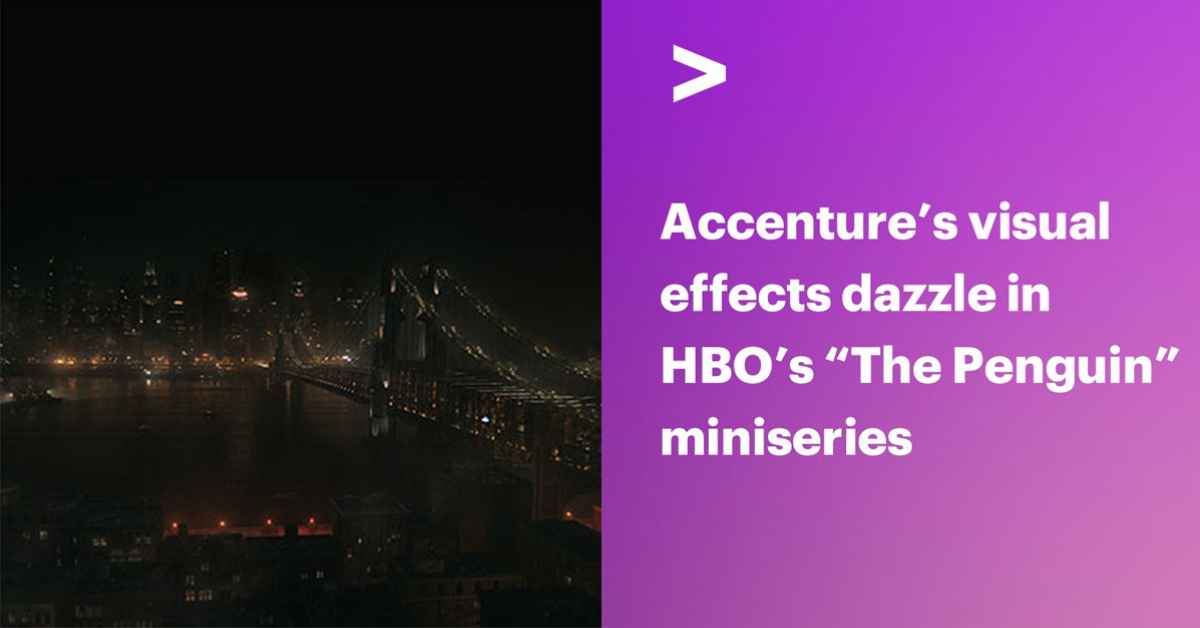 The most dangerous thing a prestige spin-off can do is feel like a downgrade — and for a show set in the most visually codified city in comic book history, VFX isn't decoration, it's the credibility argument. Accenture Song built the case for The Penguin's world over ten months, fielding a 60-person team across 110 shots that had to match the neo-gothic atmosphere Matt Reeves established in The Batman without the feature film's budget or runtime to hide imperfection. The work is production craft in service of tone: Gotham's rain-slicked streets, oppressive skylines, and atmospheric opening and closing sequences aren't showing off — they're doing the invisible work of making a character study feel mythic. What's strategically notable is the consultancy's role here. Accenture Song isn't a traditional VFX house — this is capability-as-credential, a demonstration that the firm can operate at prestige television's highest tier. Winning a Creative Emmy for episode 'Bliss' and earning a Visual Effects Society nomination for 'After Hours' turns technical execution into market positioning. For the industry, this signals something broader: the line between management consultancy and creative production company has effectively dissolved, and the proof is in the Emmy reel.